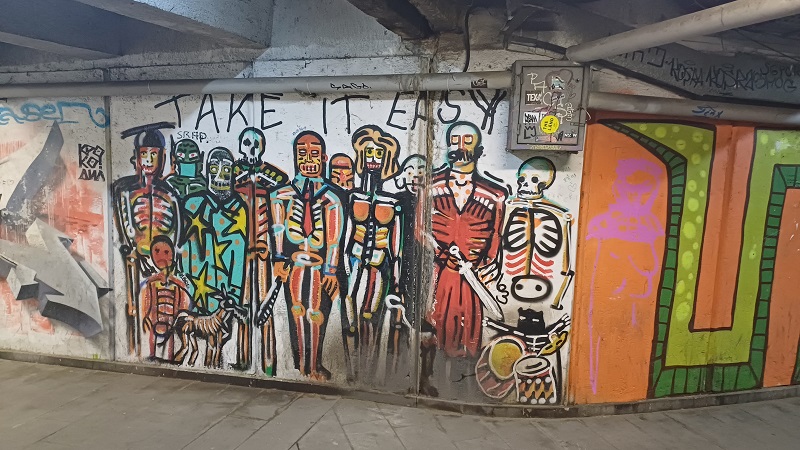 Das durfte ich mir natürlich nicht entgehen lassen. So überquerte ich den Fluss auf der Methekibrücke und lief hinauf zur modernen, 2004 erbauten Trinity-Kathedrale, einem Riesenbau, dem es ein wenig an Atmosphäre fehlte. Dann über die Friedensbrücke zurück auf die andere Seite. Im Fußgängertunnel interessante Graffiti.