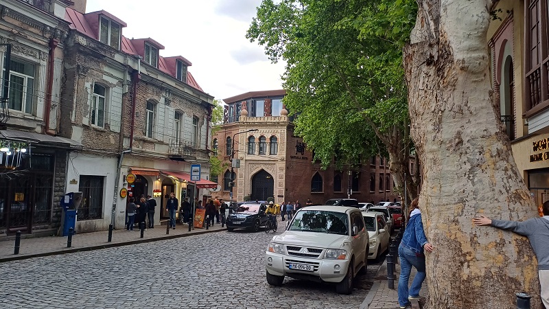 Eigentlich hatte ich vor, mit der Eisenbahn von Yerevan nach Tbilisi zu fahren. Leider fährt die nur alle zwei Tage, daher musste ich mit dem Bus fahren. So verließ ich mein gastliches Apartment, setzte mich in die Metro und fuhr zur Station Yeritasardakan. Von dort waren es nur ein paar Schritte bis zu dem Platz, wo der Minibus abfuhr. Die Fahrt kostete ca. 15 Euro und dauerte sechs Stunden. Es waren nicht viele Leute an Bord, darunter ein ukrainischer (?) Komiker, der von einem jungen Franzosen begleitet wurde. So habe ich es jedenfalls verstanden. Mit einem jungen Ehepaar kam ich ein wenig ins Gespräch. Es war ziemlich kalt unterwegs. Die Strecke führte auch am Sevan-See, dem größten des Landes, vorbei. Ab und zu hielt der Bus an und die Passagiere flüchteten sich in eine Wärmestube. Schließlich erreichten wir den Grenzübergang in Sadakhlo. Der Komiker hatte offenbar Probleme, denn der Busfahrer sah sich nach längerer Wartezeit genötigt, dessen Gepäck auszuladen und ohne ihn und seinen Begleiter weiterzufahren. Schließlich erreichten wir Tbilisi. Mit einiger Mühe (kein einheimisches Geld!) gelangte ich zu meinem Apartment in der belebten Kote-Afkhazi-Straße. Die Vermieterin war sehr freundlich, legte mir das Taxigeld aus und führte mich zu einer Wechselstube, wo ich endlich an lokale Währung kam. Auch beim Erwerb einer SIM-Card war sie mir behilflich. -Nette Dame. Das Apartment war o.k. Am Abend machte ich Bekanntschaft mit der georgischen Küche. Das urige und gemütliche Nikolozi-Restaurant servierte Khachapuri mit geräuchertem Käse – sehr lecker. Vorher gab es eine Suppe und dazu einen Liter (!) Wein. Alles zusammen kostete 45 Lari (15 Euro).