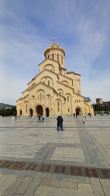 Ich bummelte noch ein bisschen in der Gegend herum und stellte fest, dass Tbilisi offenbar reich an Heilquellen ist. Ein ganzes Viertel wurde von historischen Schwefelbädern eingenommen. Ich wäre gern mal reingegangen, war mir aber zu teuer. Als ich von der armenischen Kirche über den Fluss schaute, sah ich auf der anderen Seite einen Riesenbau mit einer goldenen Kuppel.