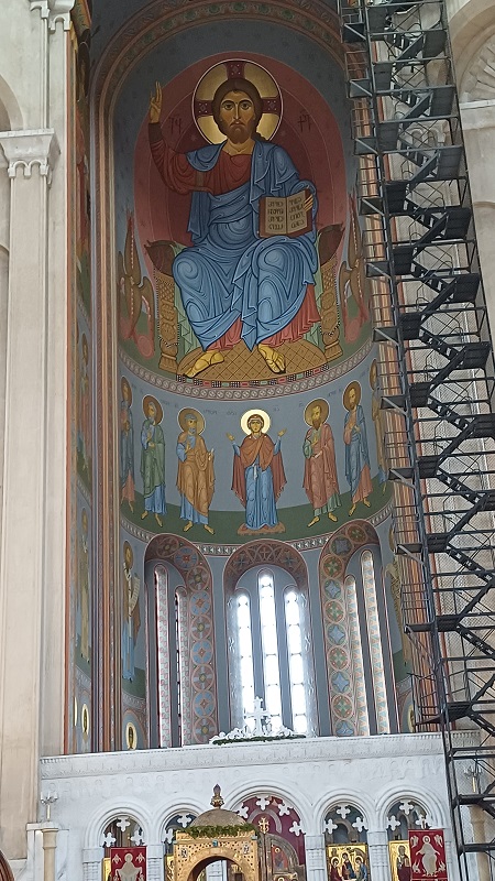 Am Abend ging ich dann zu besagtem (überwiegend) A-cappella-Konzert, dort wurde leider mehr geredet als gesungen. Ich war nicht der Einzige, der sich langweilte … Auf dem Rückweg zu meiner Unterkunft kam ich am Parlament vorbei, wo gerade eine Demonstration stattfand, die von starken Polizeikräften begleitet wurde. Gelegentlich gab es Rangeleien. Ich drückte mich vorbei, so gut ich konnte. Wie ich las, ist Georgien eine sehr lebhafte Demokratie und gelegentliche Schlägereien im Parlament sind nicht ungewöhnlich.