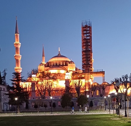 Ich hatte überlegt, mir ein Bad im legendären Çagaoglu Hammam zu gönnen, wie schon 1975 zusammen mit meinem Freund Uwe. Weiß nicht mehr, wie viel wir damals bezahlt haben, aber es können wohl nicht mehr als 5 DM gewesen sein. Heute kostet der Spaß 90 Euro – mindestens! Ich verzichtete dankend. Auch mein Dinner im Pudding Shop musste ausfallen, weil es keine gefüllten Paprika gab, die ich seinerzeit immer gern gegessen habe. Am Abend besuchte ich eine Vorstellung der Tanzenden Derwische in einer Medresse nahe der Divan Yolu. War sehr unterhaltsam. Nach der Vorstellung wollte ich eigentlich zum Dinner in ein Restaurant gehen, aber die Massen an Touris und die Preise verdarben mir den Appetit. So kaufte ich mir im Supermarkt an der Ecke etwas.