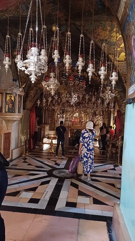 Mein erster Weg führte mich in die von einer Mauer umgebene Altstadt, zur Grabeskirche. Ich wanderte die Via Dolorosa hinunter, auf der sich weiland Jesus Christus zur Kreuzigung schleppte. Und wo der Schuster Ahasverus ihm verwehrte, sich auf seiner Türschwelle auszuruhen. Er ist schuld daran, dass die Juden zur ewigen Wanderschaft verflucht sind. So erzählt es zumindest die Legende. Diverse christliche Konfessionen (griechisch-orthodoxe, römisch-katholische, armenische, syrisch-orthodoxe, koptische und äthiopisch-orthodoxe) teilen sich die Verwaltung und sind sich – wie ich las – spinnefeind.