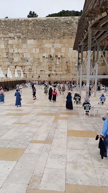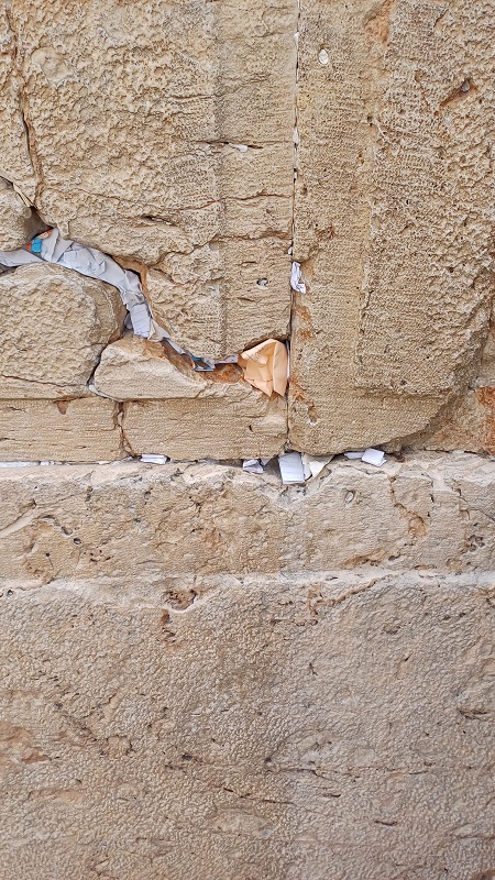 Am nächsten Tag besuchte ich die Klagemauer, das letzte Überbleibsel des herodianischen Tempels. Es gibt dort verschiedene Abschnitte: an einem beten die Frauen, am anderen die Männer. Letzterer hat auch einen klimatisierten Abschnitt, was ich sehr angenehm fand. Es war beeindruckend, den Männern mit Gebetsriemen und Schläfenlocken beim Gebet an der Klagemauer zuzuschauen. Einige schienen in eine Trance verfallen zu