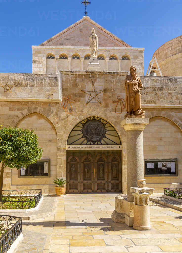 Am nächsten Tag fuhr ich mit dem Bus Nr. 234 vom Damaskus-Tor nach Betlehem. Die Stadt liegt im Westjordanland, d. h. im sog. Palästinensischen Autonomiegebiet, von den Israelis Judäa und Samaria genannt. Dort wurde nach Angaben der Bibel Jesus Christus geboren. Riesige Mauern trennen das Gebiet von Israel ab; wir mussten etliche Checkpoints passieren. Unser Bus kam relativ problemlos durch, aber Privatautos wurden stark gefilzt. Die Spannung war fast greifbar. Es sind nur knapp 10 km von Jerusalem nach Betlehem, doch man betritt eine andere Welt. Genauer gesagt: die Dritte Welt! Was für ein Kontrast zu Jerusalem! Heruntergekommene Häuser, vermüllte Straßen, verhüllte Frauen. Dazwischen schmucke israelische Siedlungen, meist auf Hügeln.